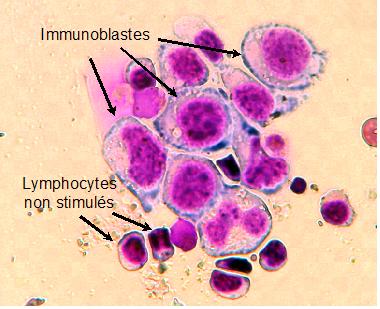 Suite à une remise en contact avec un allergène sensibilisant, les lymphocytes mémoires vont répondre par une transformation morphologique (transformation lymphoblastique) et leur prolifération par division cellulaire va être initiée.